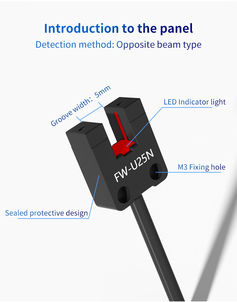In the demanding world of industrial automation, reliability and precision are not just features—they are necessities. The FW25 Series U-groove Photoelectric Sensor is engineered to meet these critical demands, offering unparalleled accuracy and durability for a wide range of sensing applications. With a standardized 5mm U-groove detection width, this sensor is the ideal solution for engineers and system integrators who require consistent performance in detecting small components, precise positioning, and motion control.