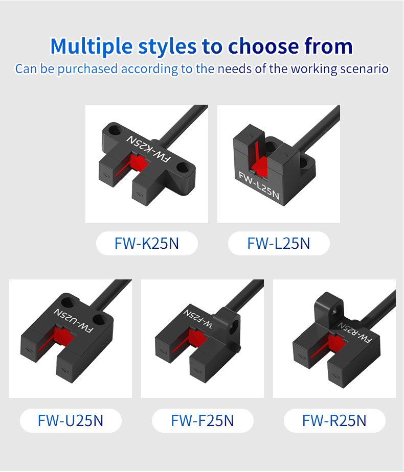 Meta Description: Discover the FW25 Series U-groove photoelectric sensor with a 5mm detection width. Featuring an intelligent chip, integral housing, and versatile styles for origin detection, rotational speed monitoring, and guide rail control. Ideal for robust industrial automation applications.