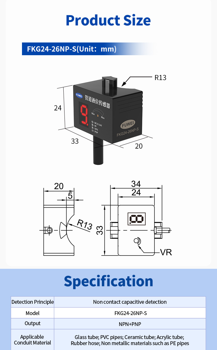 FKG24-26NP series Pipe Liquid Level Sensor Capacitive principle, not easily affected by pipe material