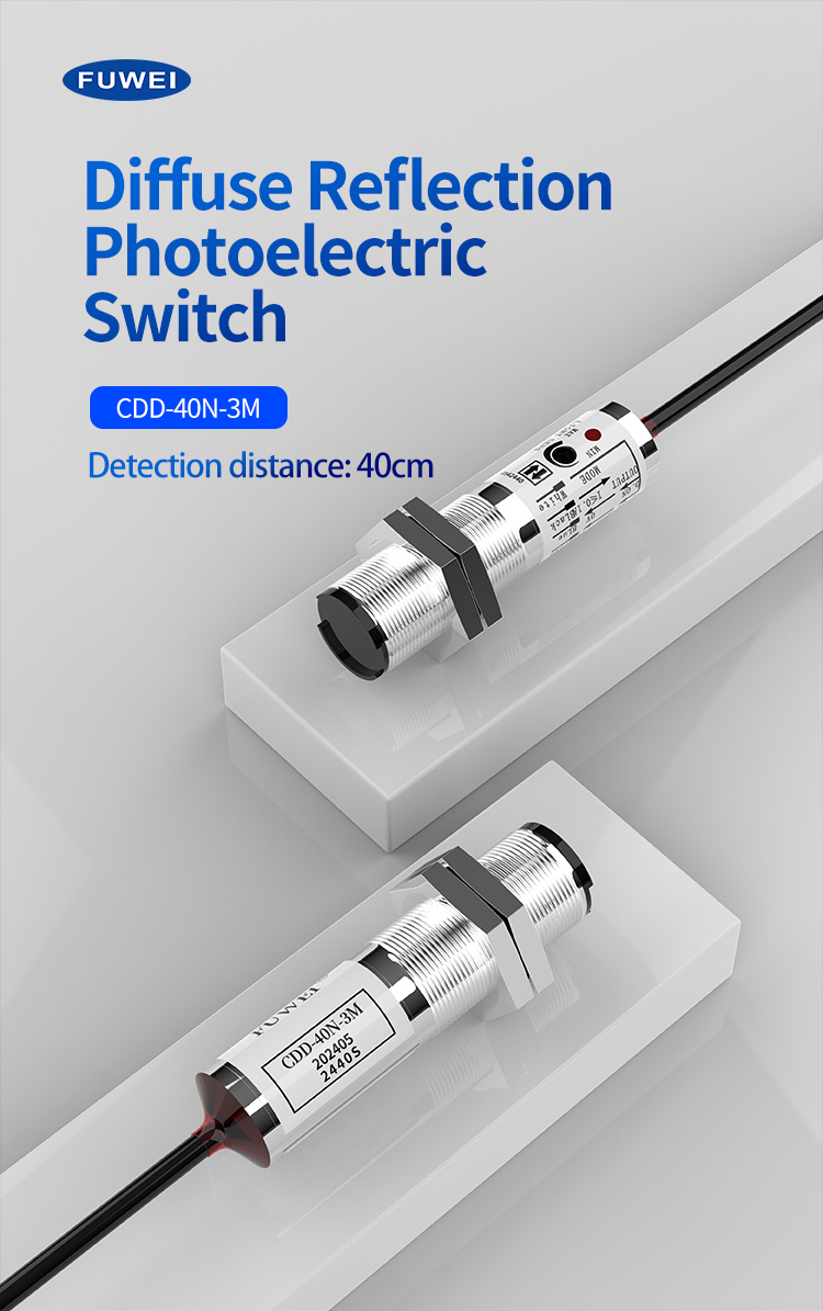 In industrial automation scenarios, unstable detection distance, frequent interference and insufficient protection often lead to equipment misjudgment.CDD-40N-3M diffuse reflective photoelectric switch with 40cm adjustable detection distance, super anti-interference performance, multiple safety protection three core advantages, become a reliable choice for complex working conditions.