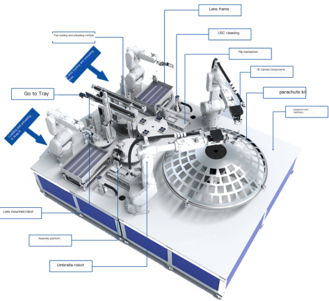 In terms of production capacity, high-precision coating loading and unloading equipment has also demonstrated strong capabilities. It adopts two assembly robots and two umbrella loading robots, combined with 3D cameras for precise recognition and grasping, achieving efficient and stable loading and unloading actions. With such efficient configuration, it only takes 16.7 minutes to complete an umbrella loading (dual robot solution), saving the enterprise a lot of time and labor costs.
