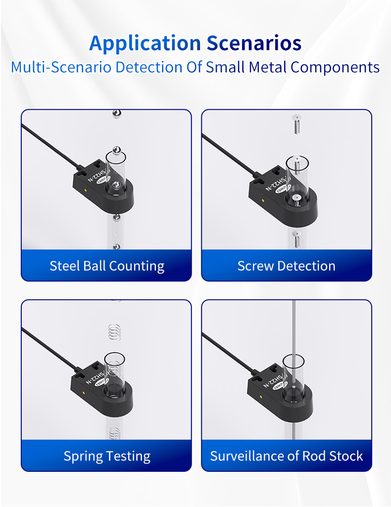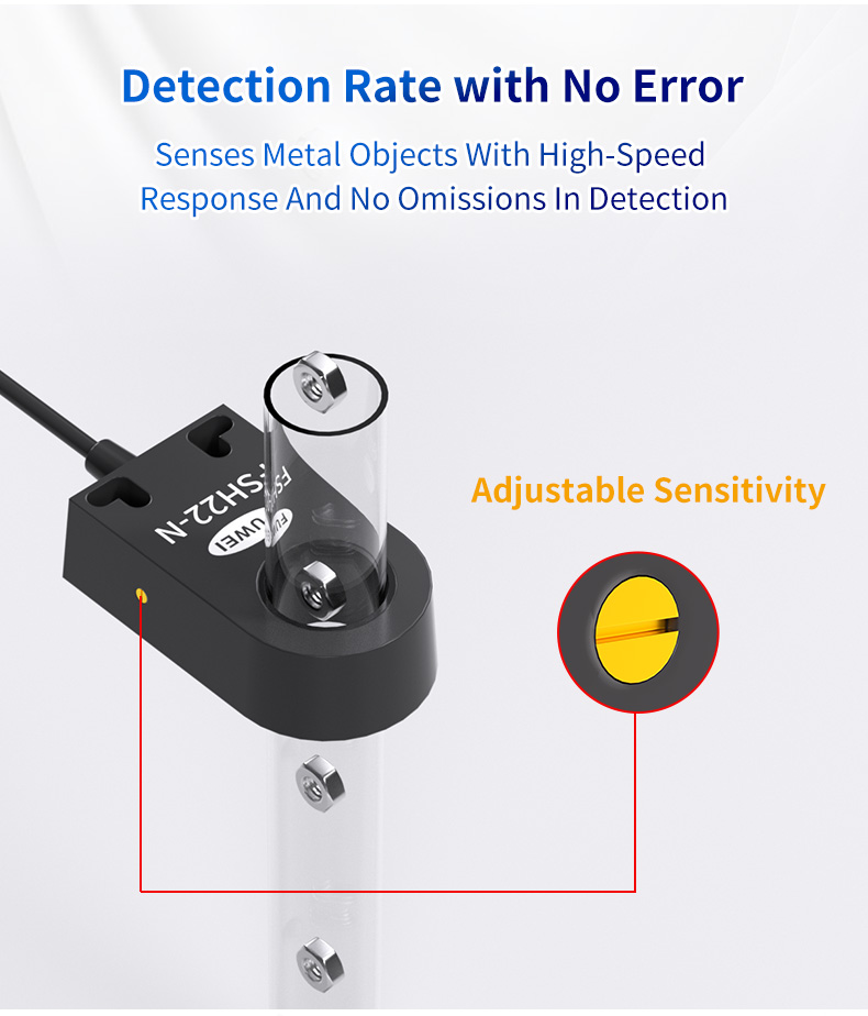 Modern production lines move fast. Your sensors must keep up. The FSH05-FSH44 features a high-speed response time, capable of detecting and signaling the presence of metal objects in microseconds. This allows it to perform flawlessly in high-cycle applications, such as:Steel Ball Counting: Precisely counting thousands of balls per minute without a single miss.Spring Testing: Verifying the presence and orientation of springs in assembly mechanisms.Screw Detection: Ensuring every screw is present before a tightening process begins.Surveillance of Rod Stock: Monitoring the feed of metal rods with perfect reliability.This "Detection Rate with No Error" capability ensures that your quality control checkpoints are not bottlenecks but enablers of speed and efficiency.