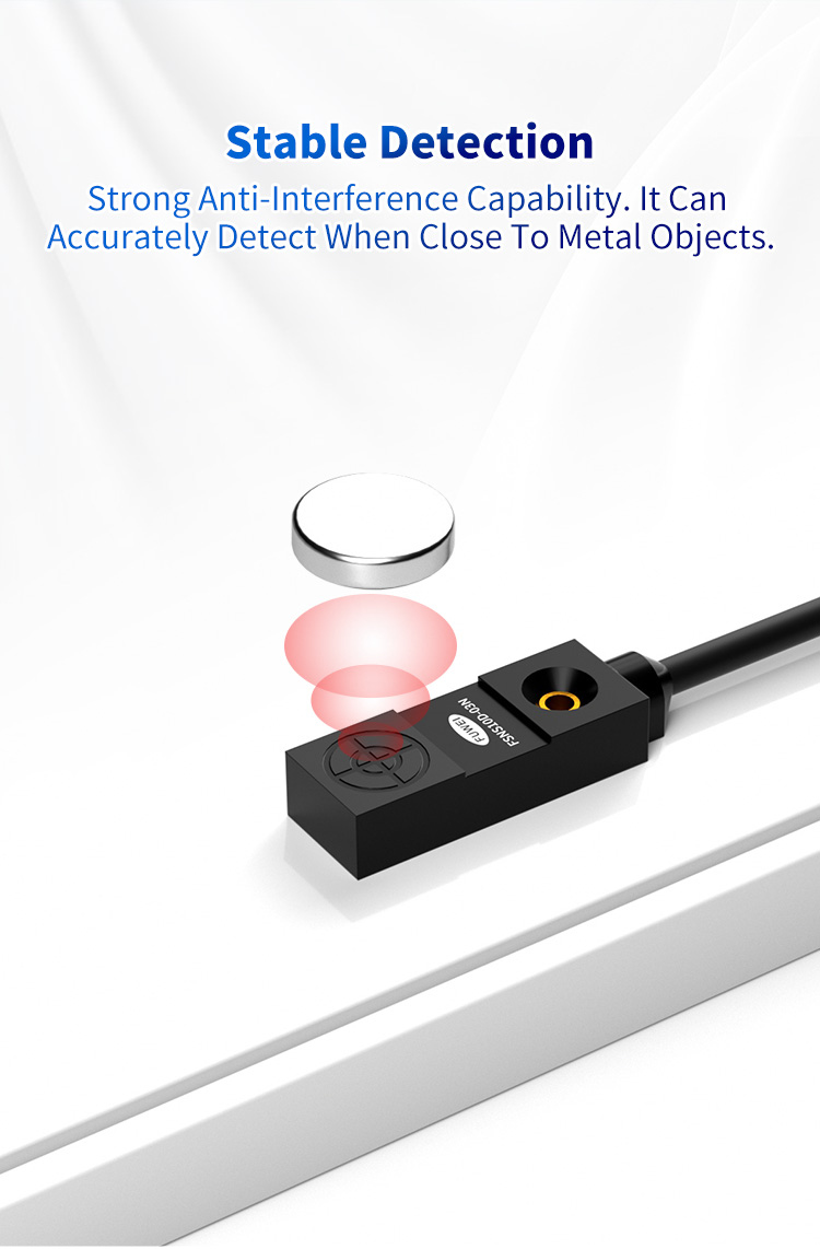 Here’s a simple breakdown of how the FSNS10D-03N works:Generate: The sensor's sensing face contains a coil that generates a high-frequency electromagnetic field.Disturb: When a metal object (the target) enters this field, it causes "eddy currents" to form on the metal's surface.Detect: This disturbance in the electromagnetic field is precisely detected by the sensor's internal intelligent chip.Signal: The chip then processes this change and triggers a solid-state output signal, indicating the object's detection.This non-contact operating principle is key to the sensor's long service life and exceptional reliability, as there are no mechanical parts to wear out.